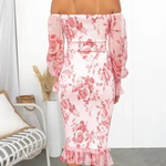 Unleash your inner elegance with the Dahlia™ Midi Dress, which highlights your feminine grace. This stunning off-the-shoulder dress with a delicate floral pattern and romantic ruffle details is perfect for any occasion. Whether it’s a garden party or a romantic dinner, the Dahlia™ Midi Dress will make you look effortlessly beautiful.