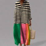 Discover art and elegance with our geometric dress Gabriela, one of our most beloved products. This modern design blends with a timeless charm, featuring dream-inspired patterns that capture attention. The fluid silhouette enhances every figure, ensuring comfort and style for every special occasion or to elevate your everyday look.