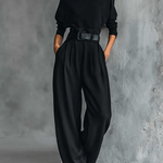 Two-Piece Women's Set: Black Long-Sleeve Top with High Neck and Straight Leg Trousers (including Belt)