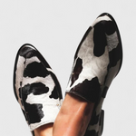Built-in comfort with an attractive design for everyday use. The mules from Karna combine the elegance of a pointed toe with a bold black and white animal print finish. Their low heel, quality materials, and comfortable fit make them an ideal choice for effortless style.