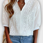 Made from a comfortable cotton blend, this blouse offers not only style but also airy comfort – ideal for warm summer days.