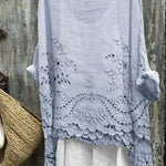 • Style: Round neck with long sleeves and asymmetrical layered hems