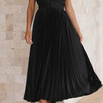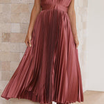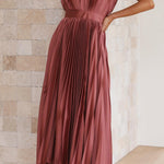 Timeless Elegance – The V-neckline and flowing pleats create a classic, stylish look.
