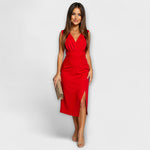 Elegant Allure: The deep V-neckline and high thigh slit create the perfect balance between bold elegance and sophisticated sensuality, ensuring you leave an unforgettable impression.