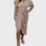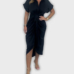 The Catherine dress is not just a dress, but a statement. Made from high-quality, airy material that gently caresses your skin, it will accompany you throughout the day – even on hot summer days. Its pleated waist and elegant collar add a touch of luxury, while the asymmetrical lines flatter any silhouette.