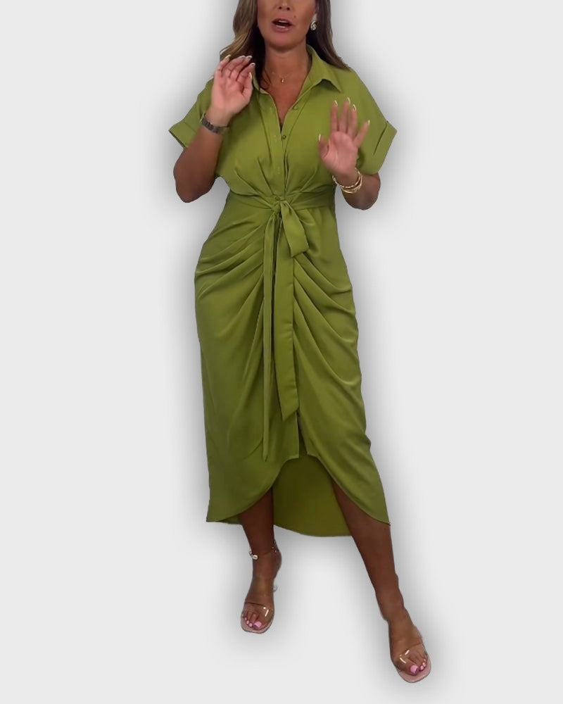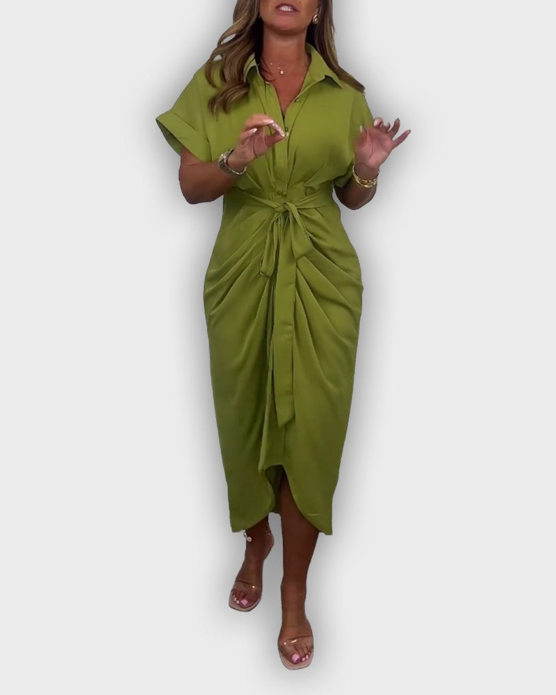 The elegant collar and buttoned front give the dress a delicate yet stylish look that draws all eyes.