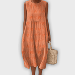 Practical details like the side pockets give the dress functionality without compromising elegance.