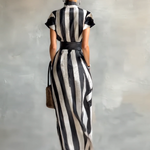 Maxi Chiffon Dress with High Neck and Short Sleeves for Women