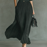 A timeless maxi dress characterised by clean tailoring, soft pleats, and a belted waist that effortlessly blends classic charm with modern elegance.
