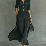Maxi Long Dress with Notched Collar and Pleats for Women