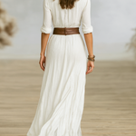 Our popular Maxi Pleated Dress combines elegance with breathable comfort, making it a best-selling choice for women who desire a refined style to wear every day. Made from a cotton and synthetic linen blend, it offers a flowing silhouette that transitions effortlessly from casual outings to more elegant occasions. This is the versatile maxi dress your wardrobe has been waiting for.