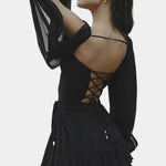 The long, semi-sheer sleeves with delicate openings provide an airy look and add subtle elegance to your outfit.