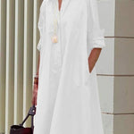 Modern Shirt Dress with Collar and 3/4 Sleeves