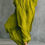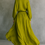 Women's Green Ensemble with High Neck in Cotton and Linen