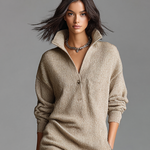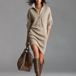 This elegant mini dress is made from soft knitted fabric featuring a refined revere collar and long sleeves, designed with a loose fit for a casual yet sophisticated look.