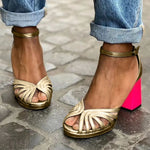 This pair of Isabella™ court shoes embodies glamour and sophistication, crafted with care down to the finest details. The bold-coloured block heels immediately catch the eye, while the golden straps add a touch of light and femininity. The closed toe and T-strap provide stability and enhance the silhouette, making them perfect for any occasion, from elegant brunches to special evenings out.