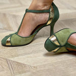 Taviana | Patchwork Heels with T-Strap and Closed Front
