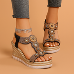 Designed with an exceptionally soft insole, these wedges provide all-day comfort with stylish touches. The dotted straps add standout details, while the wedge sole and adjustable ankle strap offer balance and stability. A versatile pair designed for style and comfort.