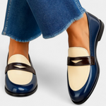 The Claudia moccasins combine classic lines with a modern contrast in their bicolor finish. Their rounded toe gently elongates the leg, while the lightweight structure and padded interior make them a comfortable and versatile ally for everyday use.