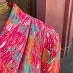 • Features: V-neck, puff sleeves, bold abstract print, above-knee length