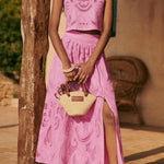 With delicate lace fabrics, thin strap top, and high-waisted split skirt, Olymp embodies a chic, lightweight, and feminine look. Wear it for a summer outing, sunbathing, or a special event — you shine effortlessly while staying comfortable. The set can be dressed up together or separately, depending on your style for the day.