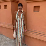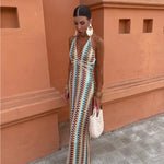 This stunning maxi dress stands out thanks to its deep neckline and fitted silhouette that beautifully accentuates the figure. The bold pattern and lightweight fabric make it the perfect choice for beach evenings, soft summer nights, or holiday dinners when you want to feel unforgettable.