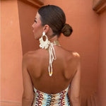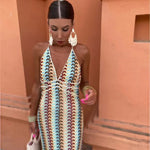 • Features: Halter neck, exposed shoulder, bold geometric pattern