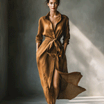 An elegant maxi dress made from a rich brown blended fabric. It combines a comfortable fit with a stylish and timeless design, perfect for casual yet chic occasions.
