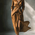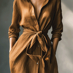 Vintage Brown Maxi Shirt Dress for Women